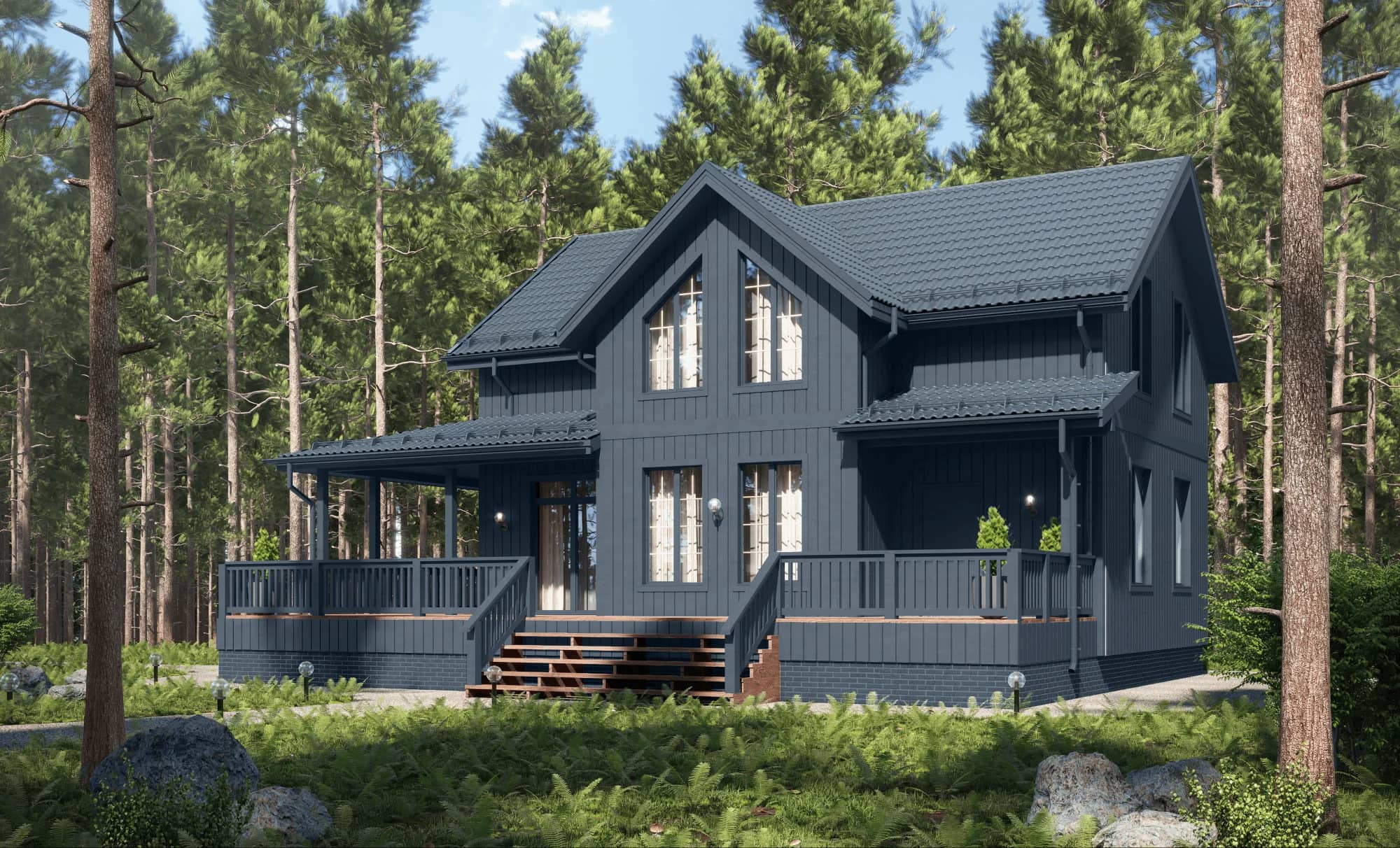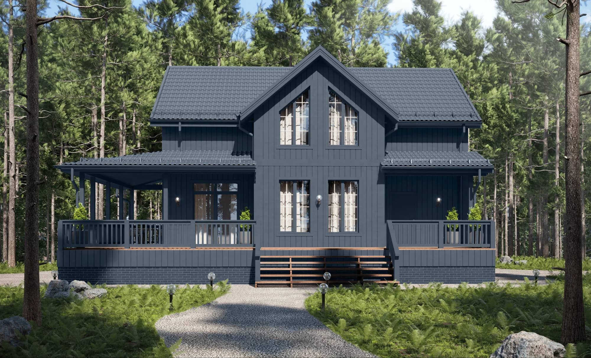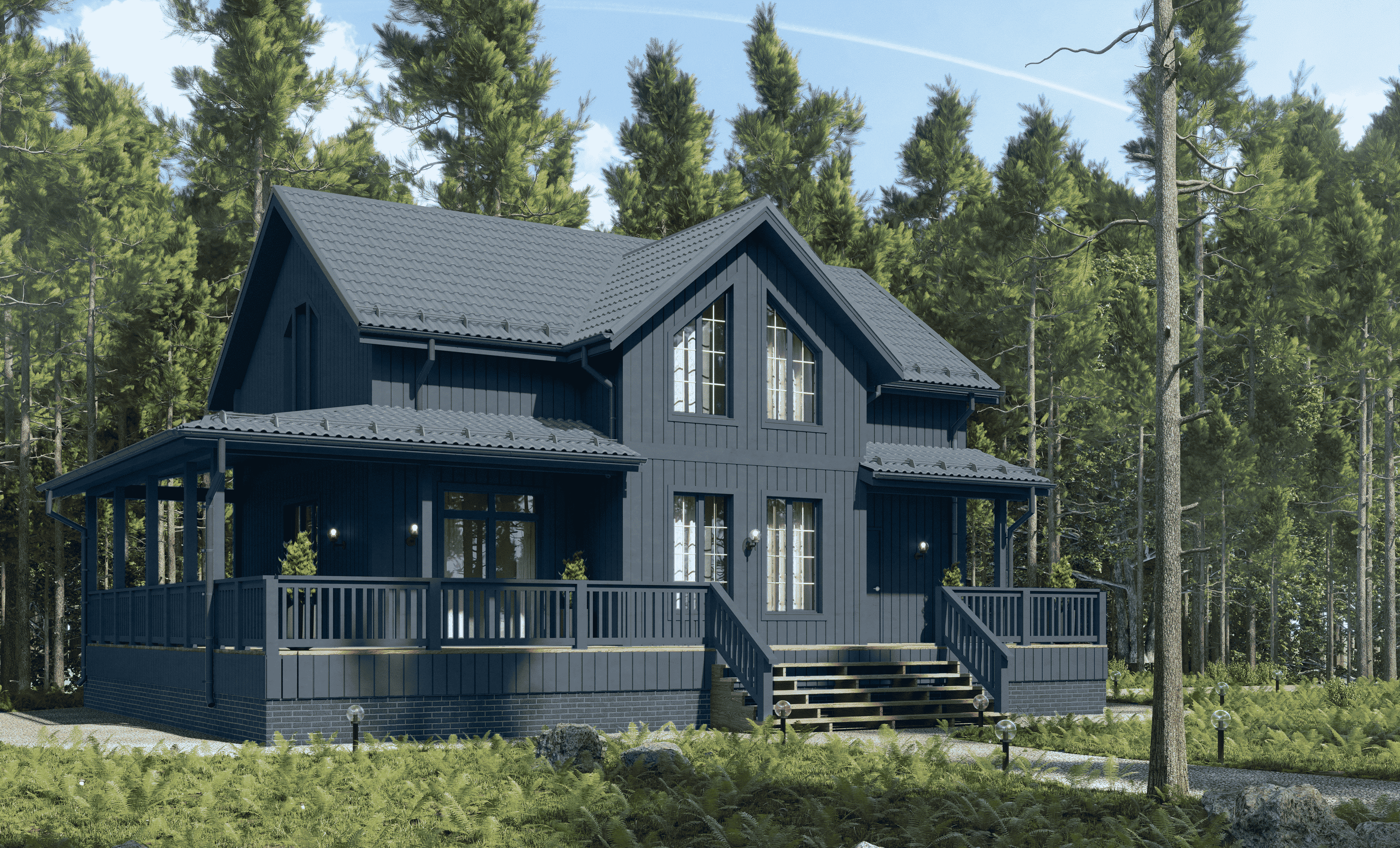 Общая площадь 179 м², отлично расположится на большом и широком участке.