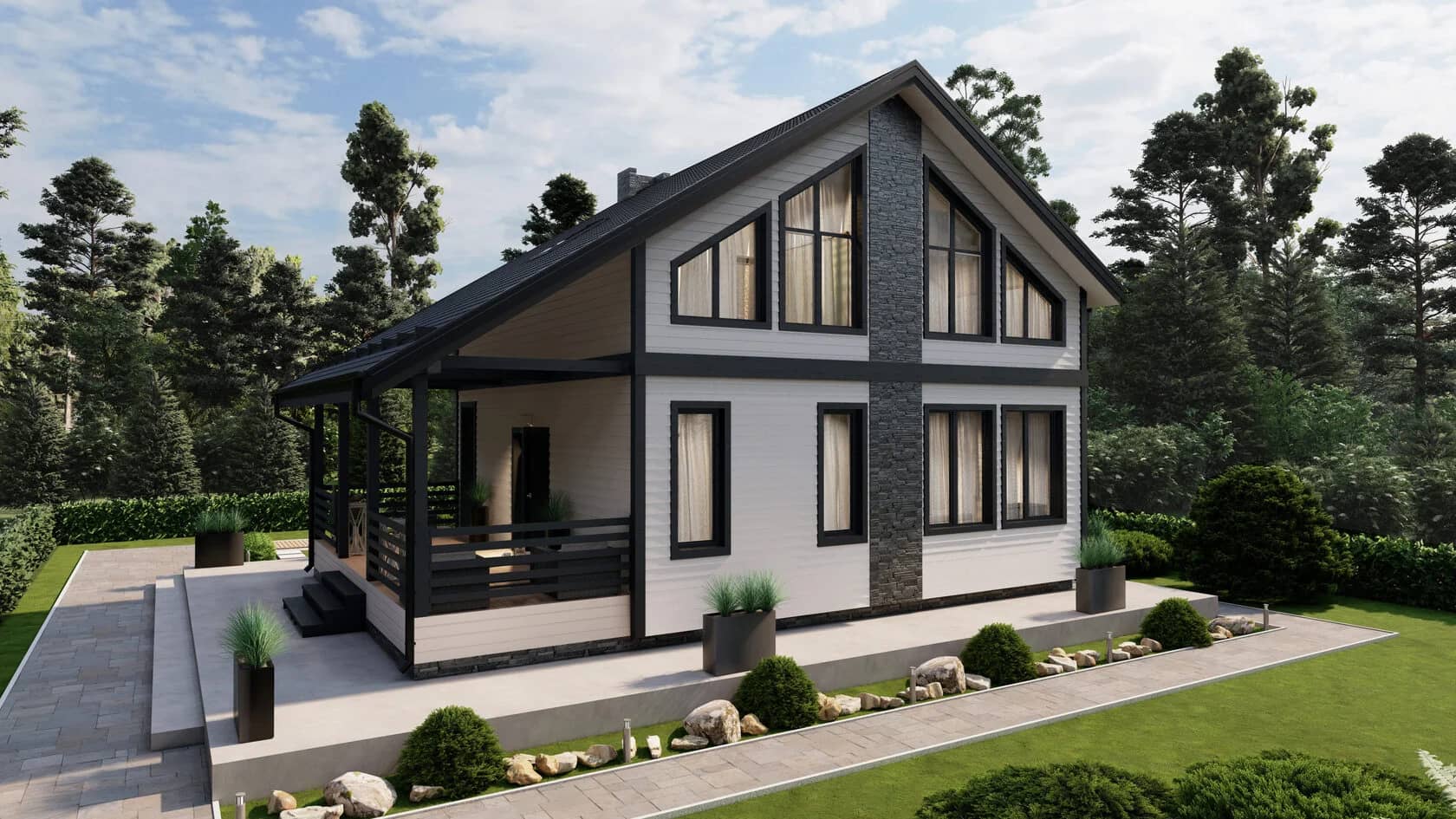 Современный двухэтажный мансардный дом со вторым светом.